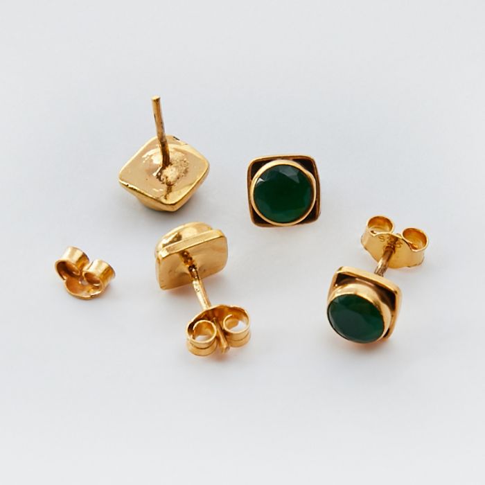 Srebrne kolczyki sztyfty z zielonym onyksem AG927 pozłacane 6mm