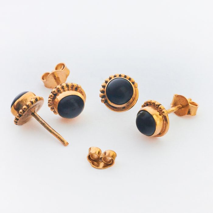 Srebrne kolczyki z czarnym onyksem pozłacane AG925 7mm