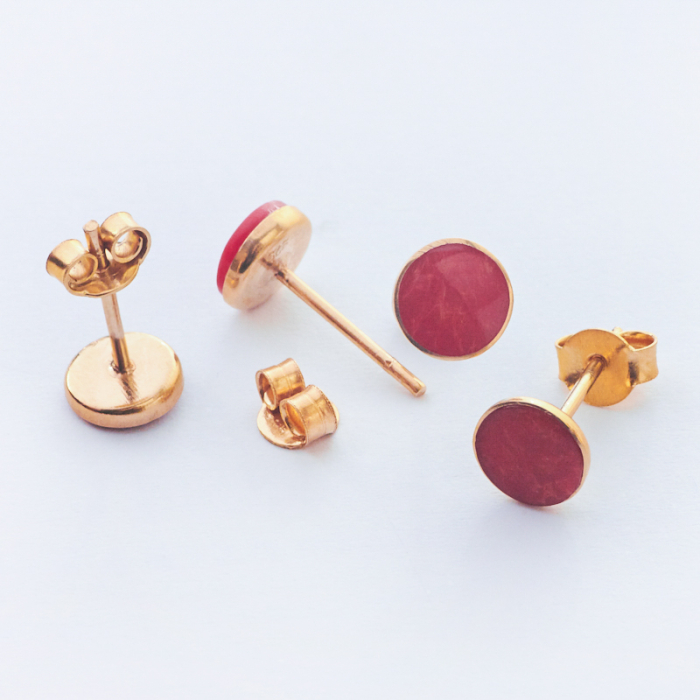 Srebrne kolczyki z czerwonym koralem pozłacane AG925 6,5mm