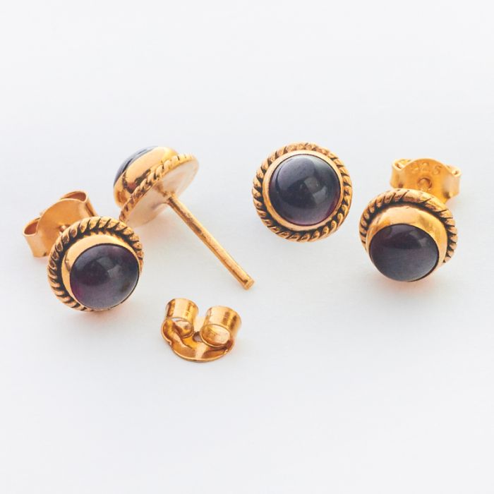 Srebrne kolczyki z granatem pozłacane AG925 7mm