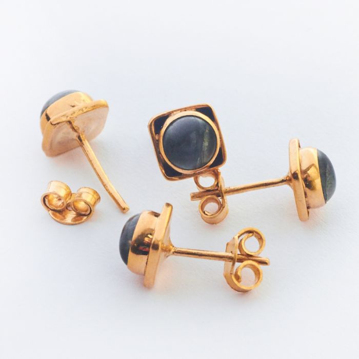 Srebrne kolczyki z labradorytem pozłacane AG925 6mm