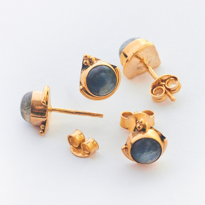 Srebrne kolczyki z labradorytem pozłacane AG925 8mm