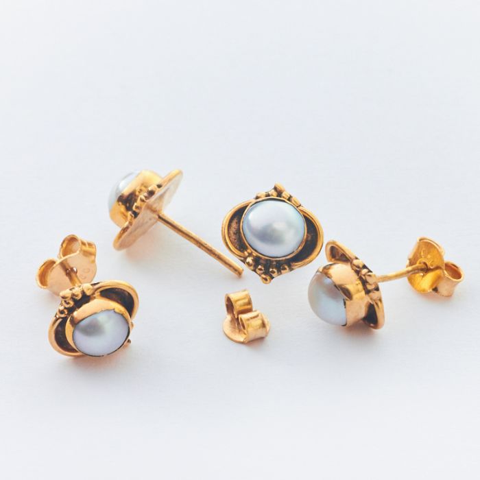 Srebrne kolczyki z naturalną perłą pozłacane AG925 9mm