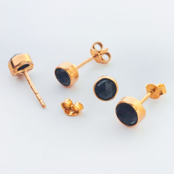 Srebrne kolczyki z onyksem fasetowanym pozłacane AG925 6mm