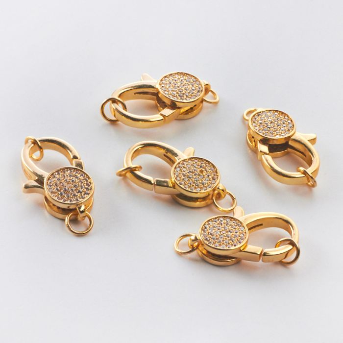 Srebrne osobne zapięcie duży karabińczyk z cyrkoniami AG925 pozłacany 20mm