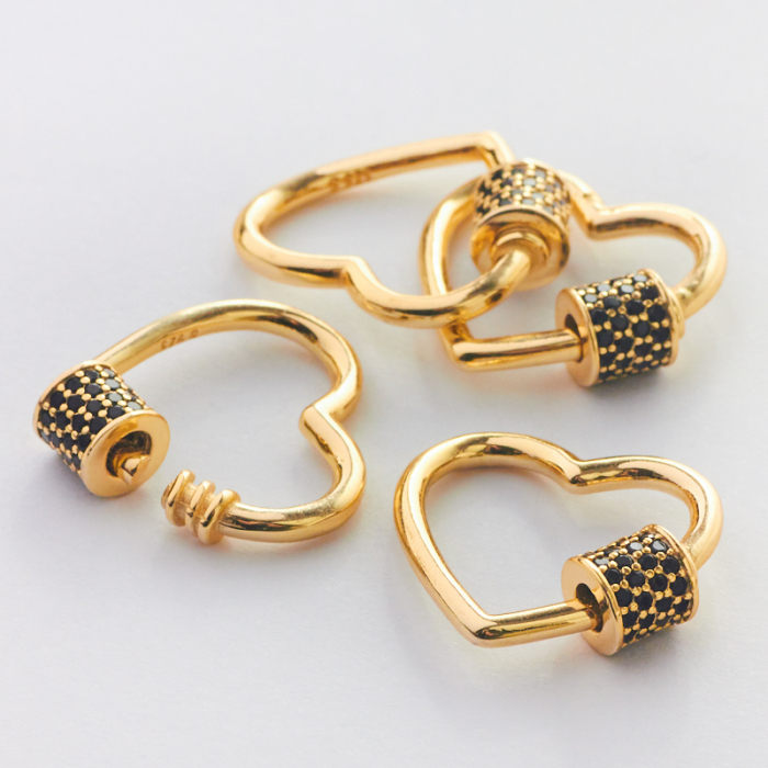 Srebrne ozdobne zapięcie serce z cyrkoniami czarnymi AG925 18mm