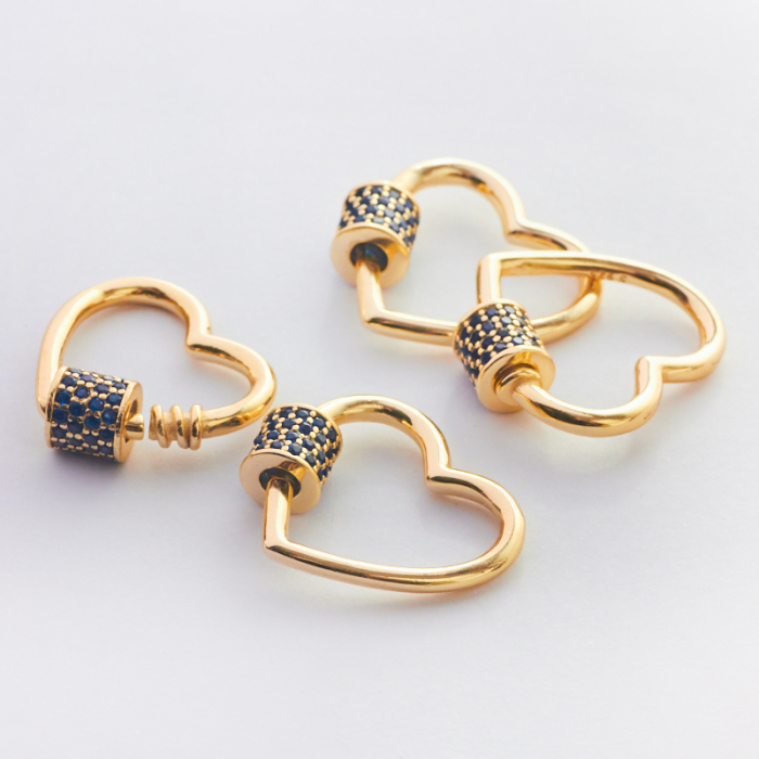 Srebrne ozdobne zapięcie serce z cyrkoniami niebieskimi AG925 18mm