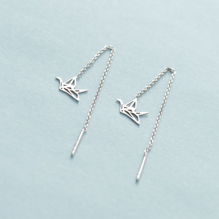 Srebrne, rodowane kolczyki czaple na łańcuszku AG925 78mm
