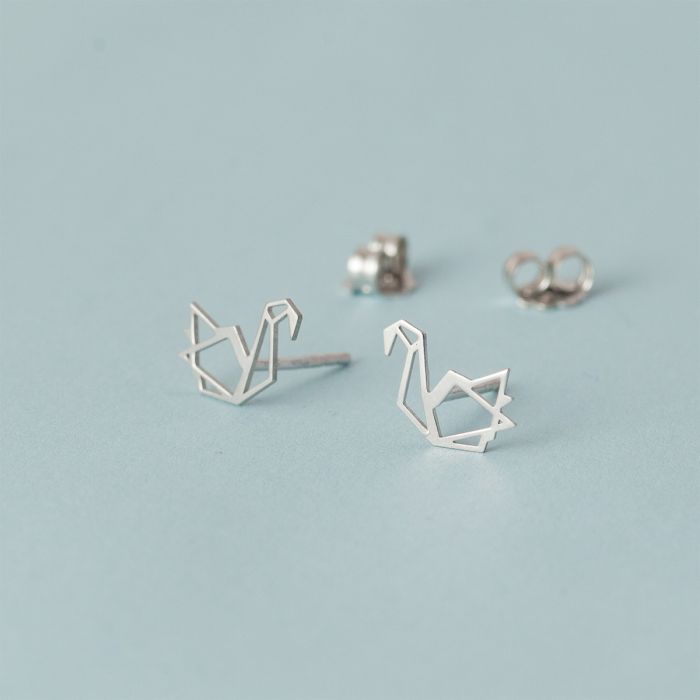 Srebrne, rodowane kolczyki łabędzie AG925 10x10mm