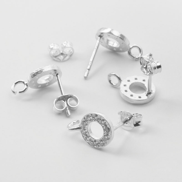 Srebrne sztyfty koła z cyrkoniami AG925 8mm