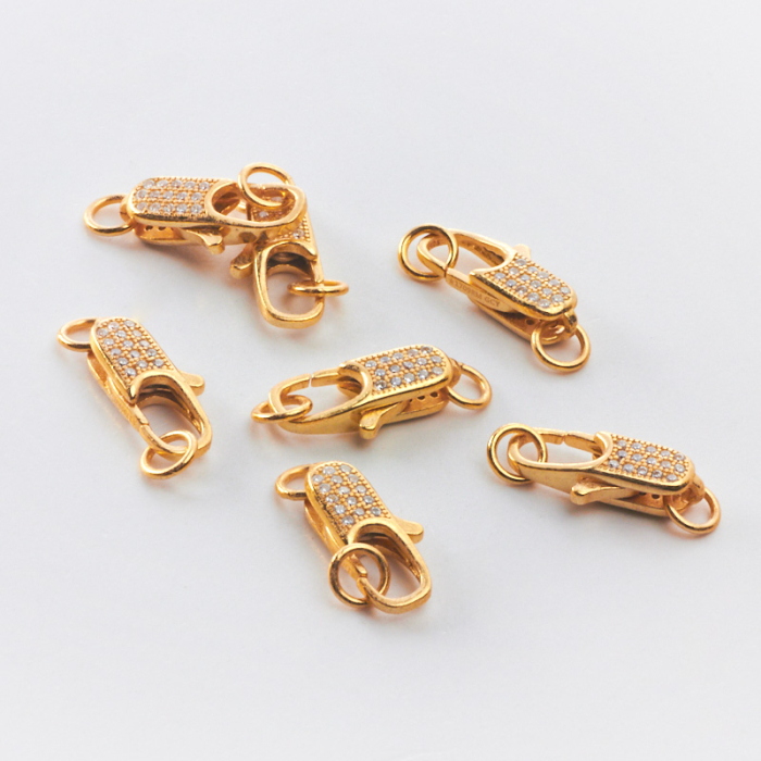 Srebrne zapięcie ozdobne karabińczyk z cyrkoniami AG925 pozłacane 16mm