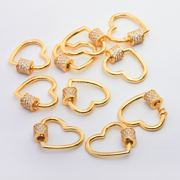 Srebrne zapięcie serce z białą cyrkonią AG925 pozłacane 18mm