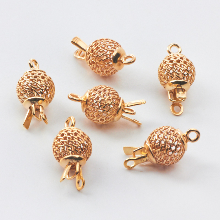 Srebrne zapięcie szufladkowe kulka ażurowa AG925 pozłacane 28mm