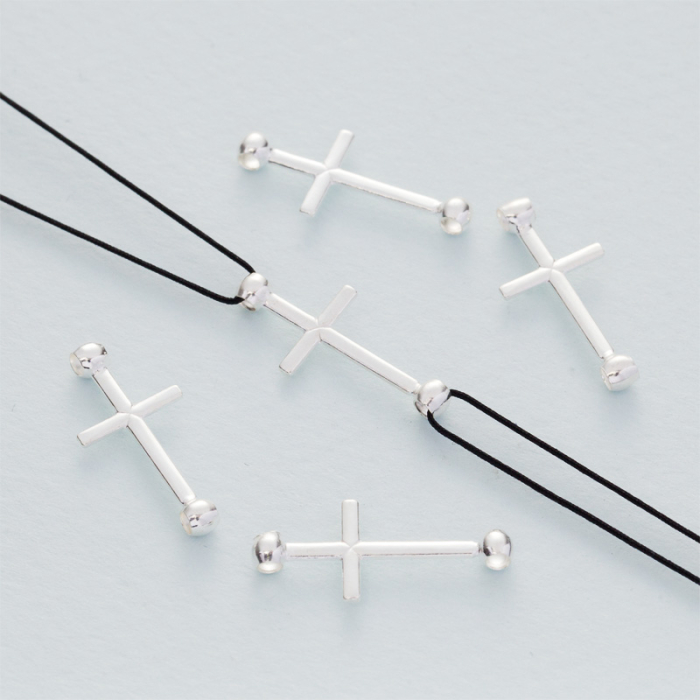 Srebrny łącznik krzyż z dwoma kuleczkami AG925 22x10mm