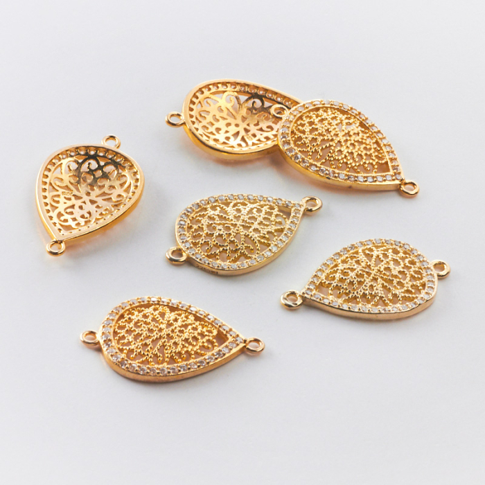 Srebrny łącznik łezka filigranowa z cyrkoniami AG925 pozłacana 24,5mm