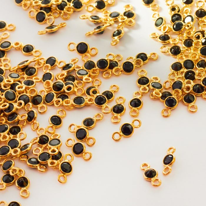 Srebrny łącznik onyks w okuciu pozłacany AG925 4mm