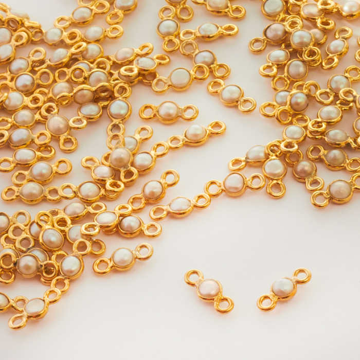 Srebrny łącznik perła w okuciu pozłacana AG925 3,5mm