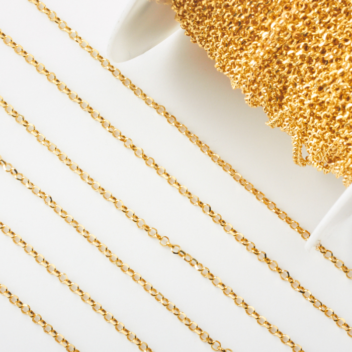Srebrny łańcuszek rolo diamentowany, pozłacany AG925 2mm