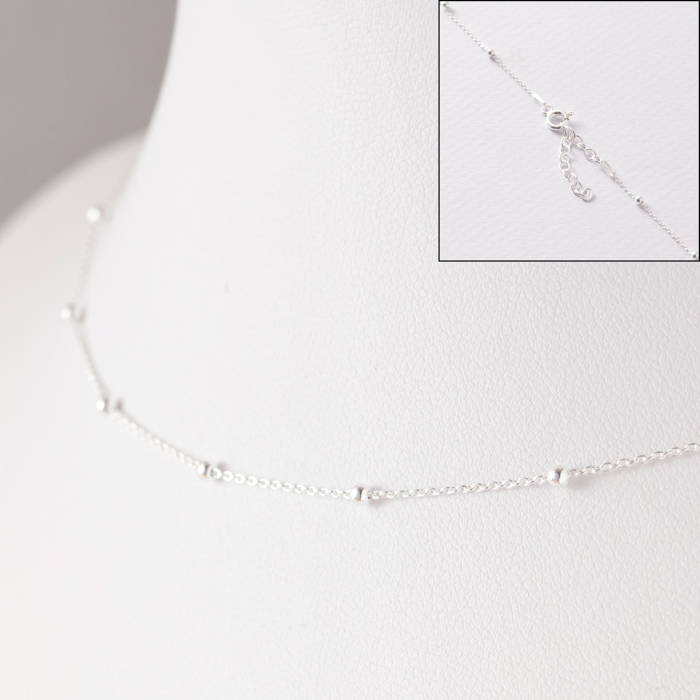 Srebrny łańcuszek simple z kuleczkami z przedłużką AG925 44cm