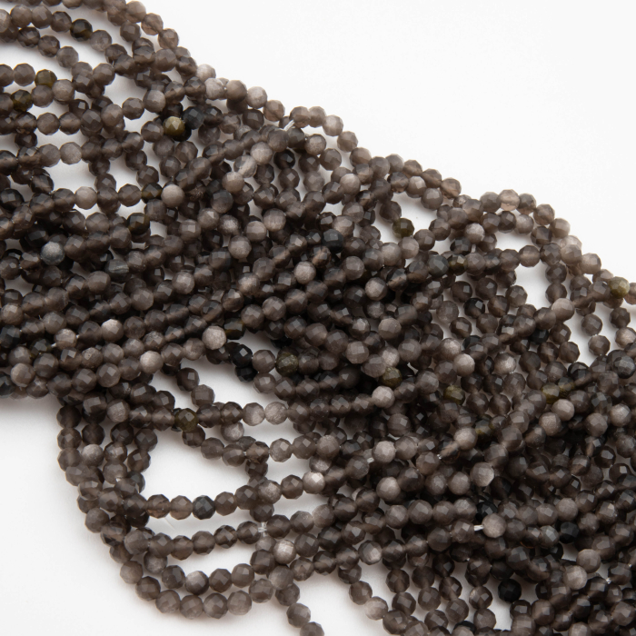 Srebrny obsydian kulka fasetowana 3mm - na sznurze