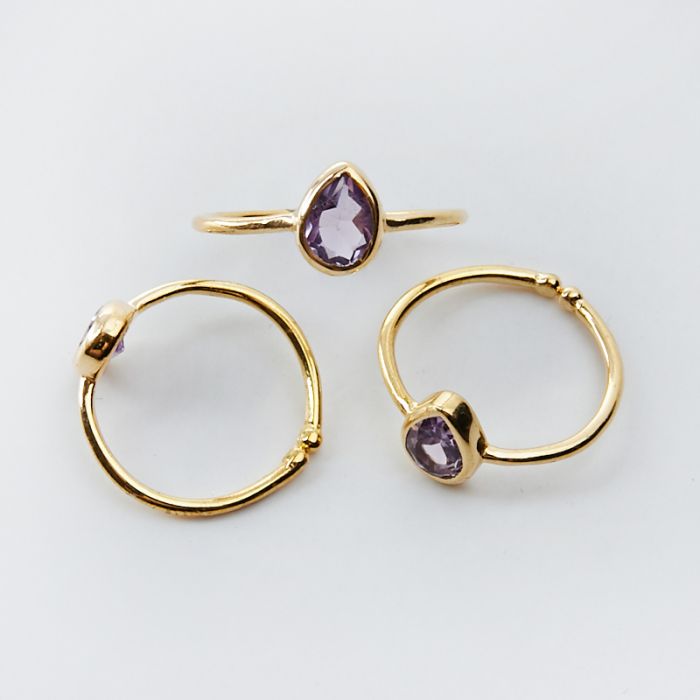 Srebrny pierścionek regulowany z ametystem łezka AG925 pozłacany 20mm