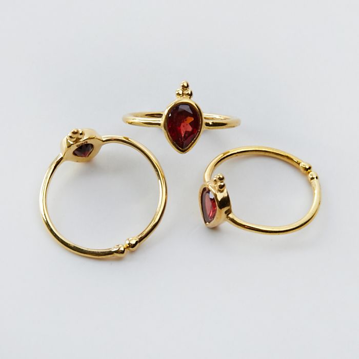 Srebrny pierścionek regulowany z granatem łezka AG925 pozłacany 20mm
