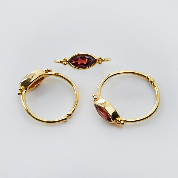 Srebrny pierścionek regulowany z granatem markiza AG925 pozłacany 20mm