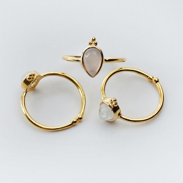 Srebrny pierścionek regulowany z kamieniem księżycowym łezka AG925 pozłacany 20mm