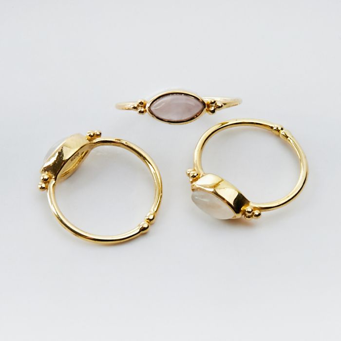 Srebrny pierścionek regulowany z kamieniem księżycowym markiza AG925 pozłacany 20mm