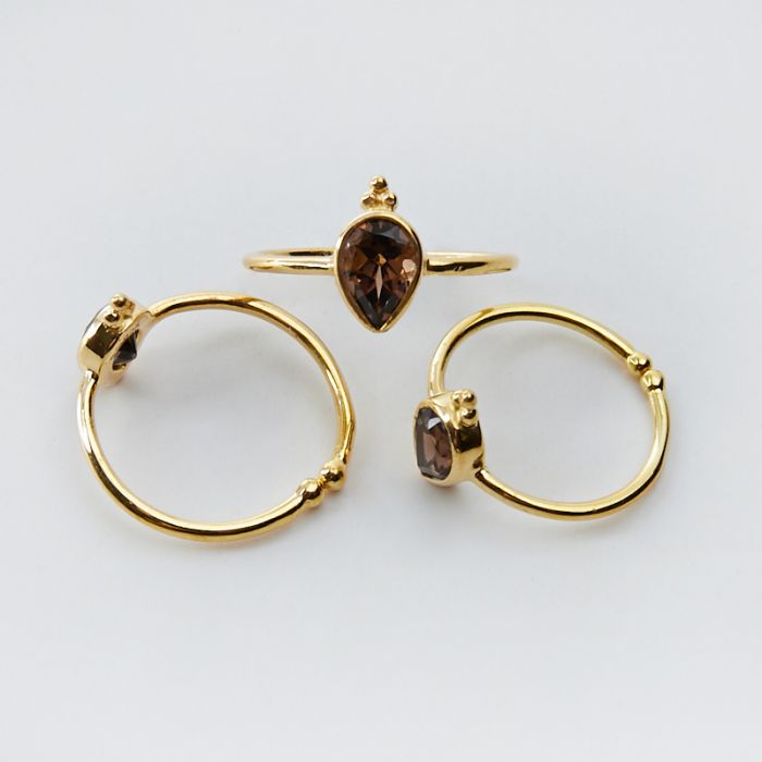 Srebrny pierścionek regulowany z kryształem górskim dymnym łezka AG925 pozłacany 20mm