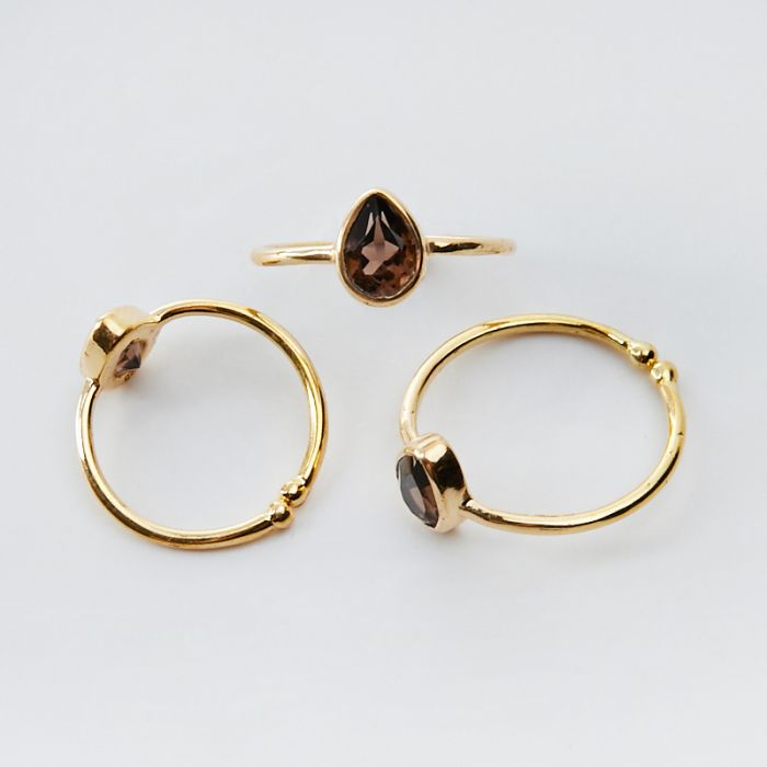 Srebrny pierścionek regulowany z kryształem górskim dymnym łezka AG925 pozłacany 20mm