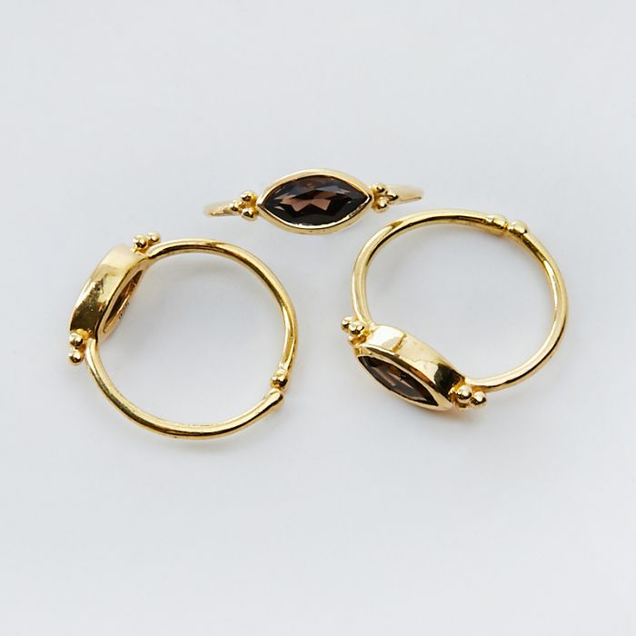 Srebrny pierścionek regulowany z kryształem górskim dymnym markiza AG925 pozłacany 20mm