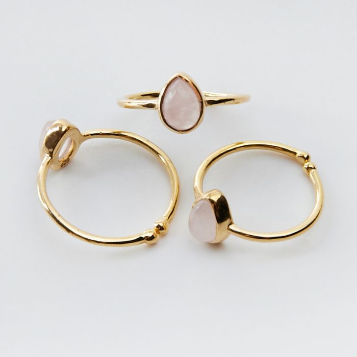 Srebrny pierścionek regulowany z kryształem górskim różowym łezka AG925 pozłacany 20mm