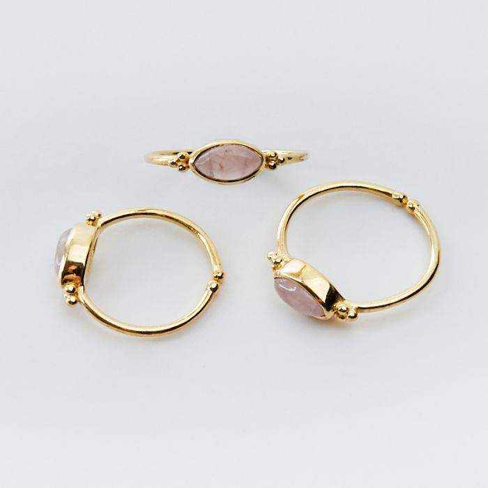 Srebrny pierścionek regulowany z kryształem górskim różowym markiza AG925 pozłacany 20mm
