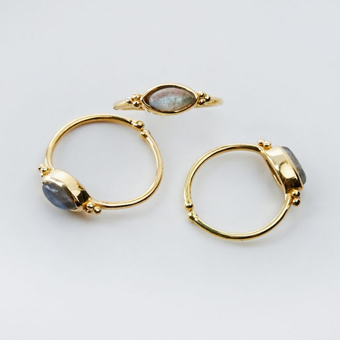 Srebrny pierścionek regulowany z labradorytem markiza AG925 pozłacany 20mm