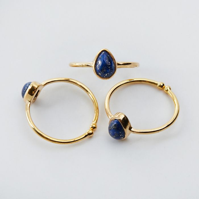 Srebrny pierścionek regulowany z lapis lazuli łezka AG925 pozłacany 20mm