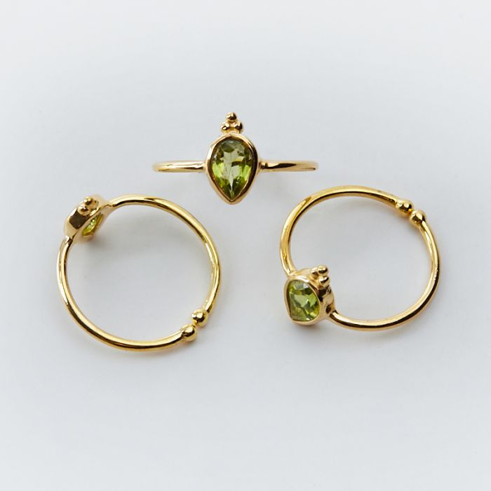 Srebrny pierścionek regulowany z peridotem łezka AG925 pozłacany 20mm