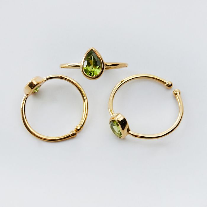 Srebrny pierścionek regulowany z peridotem łezka AG925 pozłacany 20mm