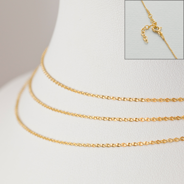 Srebrny, pozłacany łańcuszek z przedłużką rollo płaskie kółka AG925 44cm