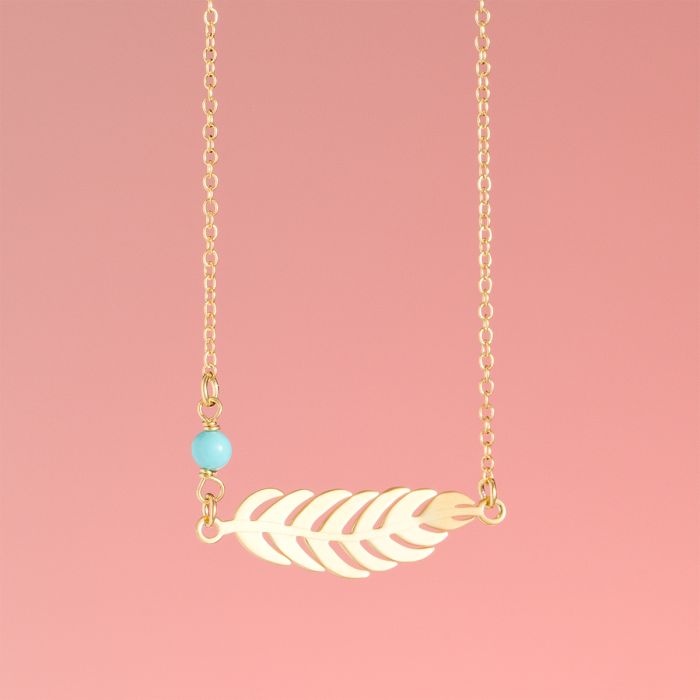 Srebrny, pozłacany naszyjnik pióro z koralikiem, AG925 44cm