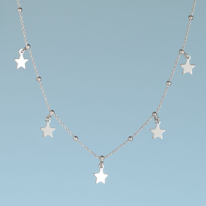 Srebrny, rodowany naszyjnik pięć gwiazdek, AG925 40-45cm