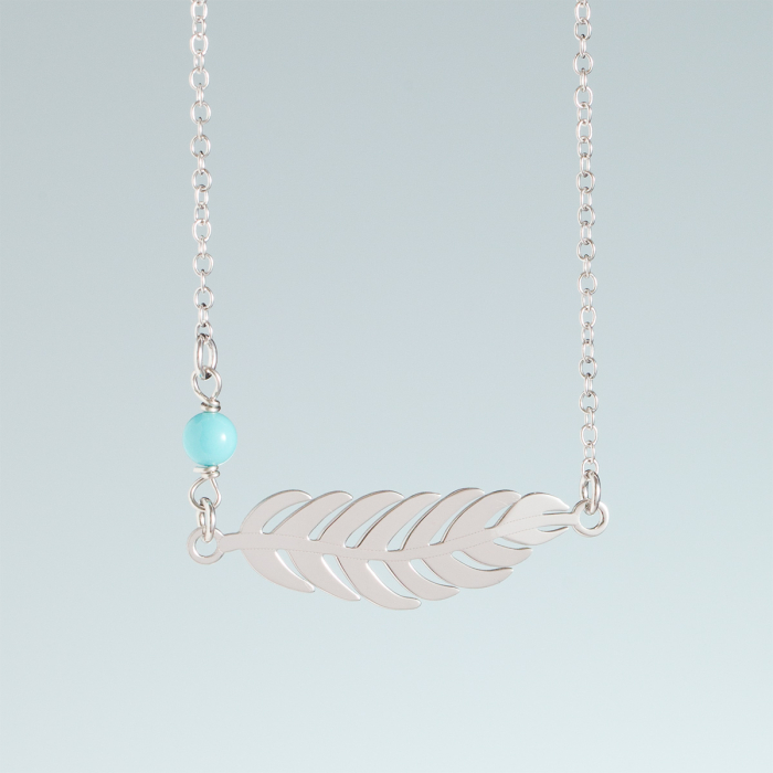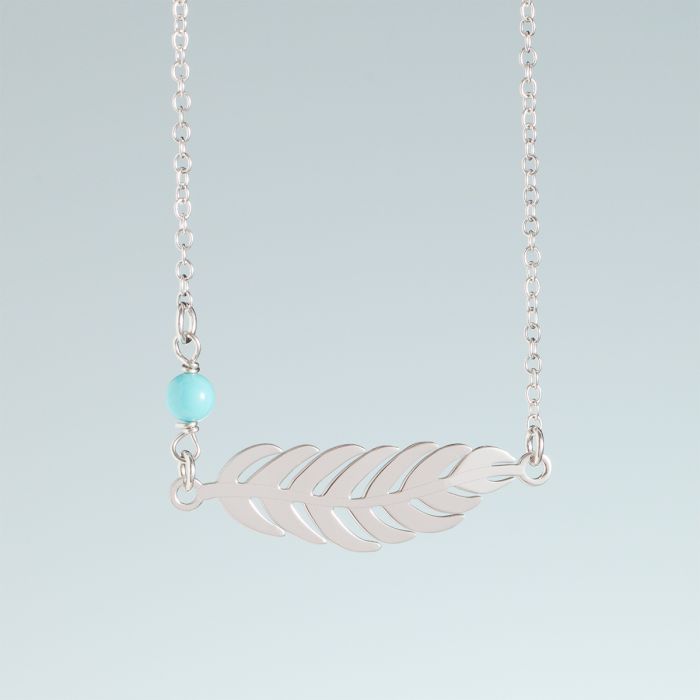 Srebrny rodowany naszyjnik pióro z koralikiem, AG925 44cm