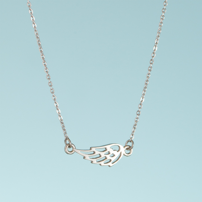 Srebrny rodowany naszyjnik z ażurowym skrzydłem anioła, AG925 44cm
