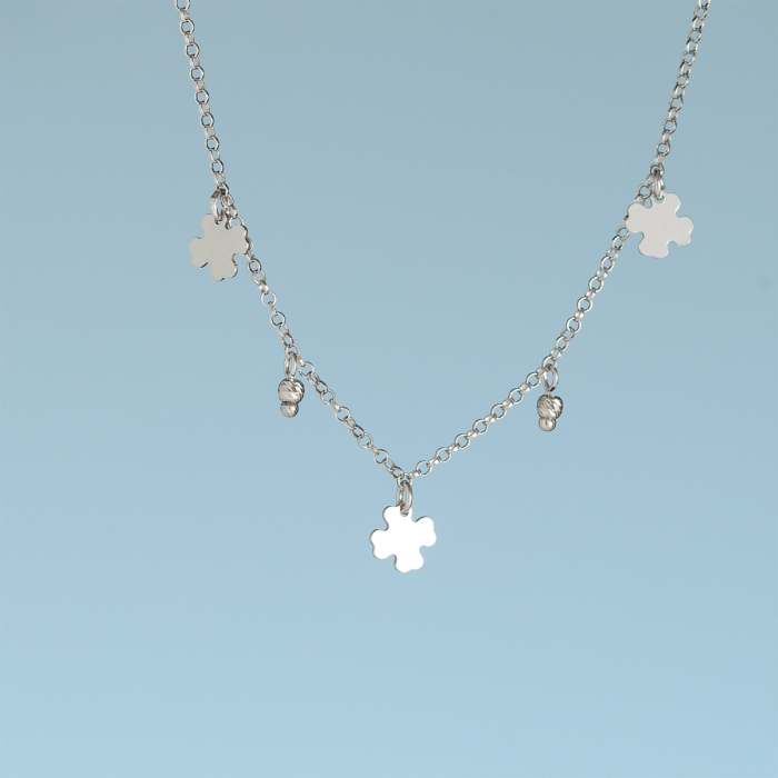 Srebrny, rodowany naszyjnik z koniczynkami AG925 34-38cm