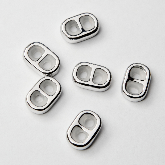 Stoper z silikonem ósemka do sznurków i rzemieni z mosiądzu w kolorze srebrnym 12,5x8mm