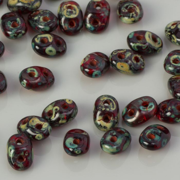 SuperDuo 2,5x5mm Siam Ruby - Picasso (T90080)
