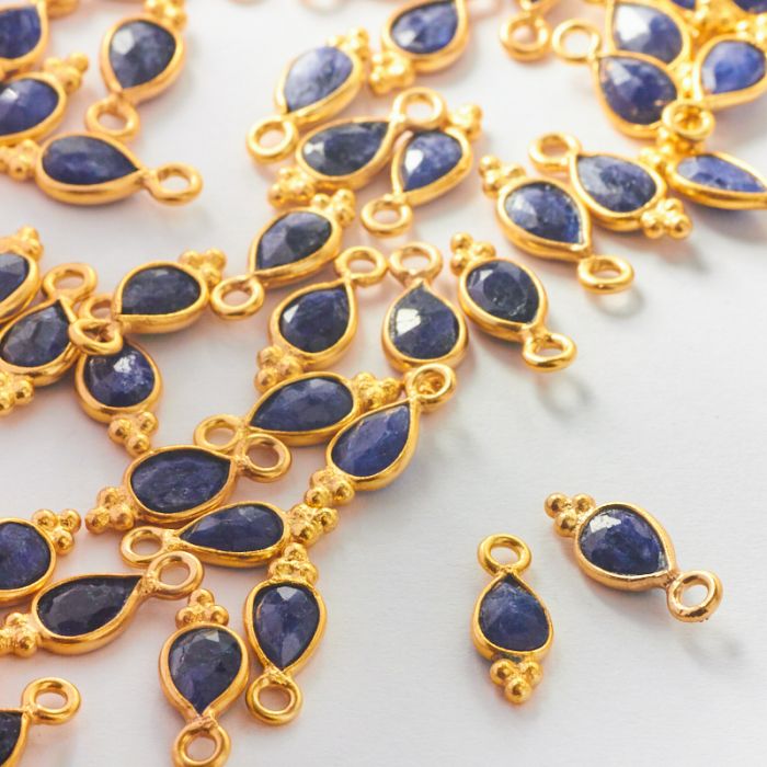 Szafir fasetowany łezka w okuciu pozłacanym AG925 13mm