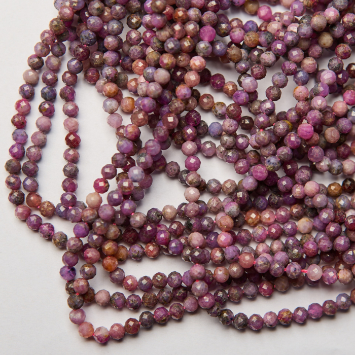 Pięknie mieniące się fasetowane kulki naturalnego szafiru. Kamienie występują w różnych kolorach i odcieniach: niebieskie, szare, beżowe, fioletowo-niebieskie i różowe. Charakterystyka: