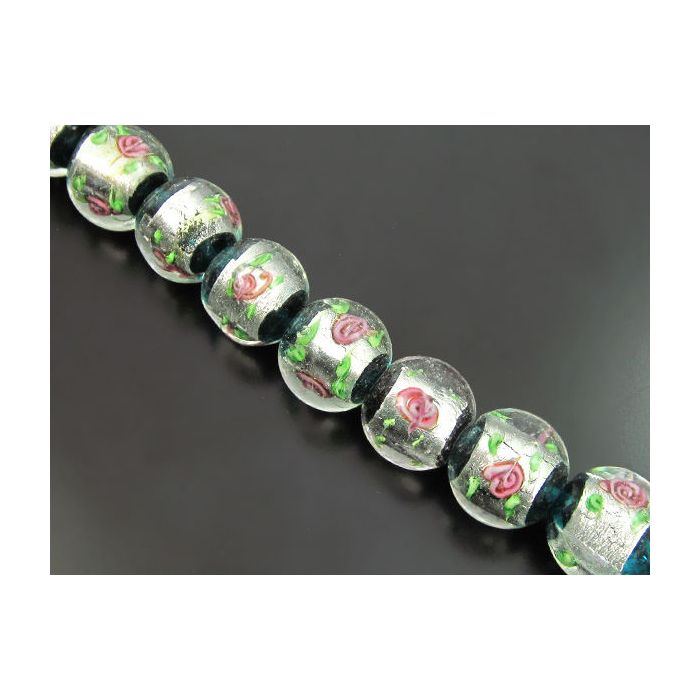 Szkło weneckie lampwork kulka róża w emeraldzie 18mm