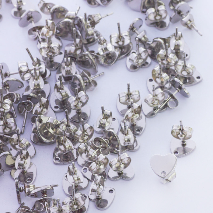 Sztyfty do kolczyków serca ze stali chirurgicznej w kolorze srebrnym 8mm